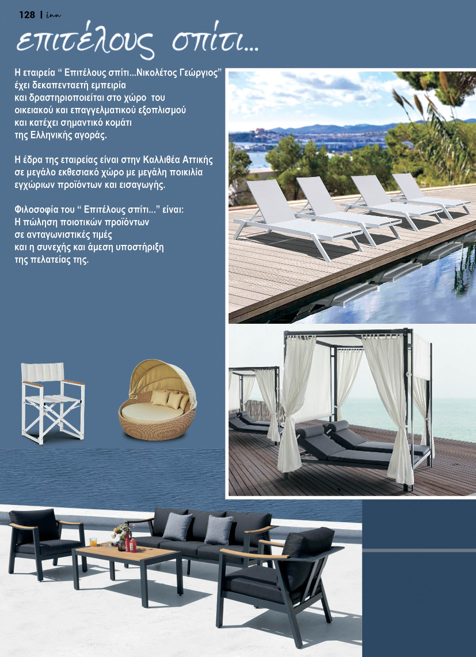 Η έδρα της εταιρείας είναι στην Καλλιθέα Αττικής σε μεγάλο εκθεσιακό χώρο με μεγάλη ποικιλία εγχώριων προϊόντων και εισαγωγής. Φιλοσοφία του “Επιτέλους σπίτι…” είναι: Η πώληση ποιοτικών προϊόντων σε ανταγωνιστικές τιμές και η συνεχής και άμεση υποστήριξη της πελατείας της.